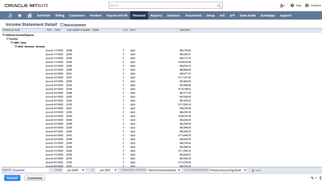 SuiteAnalyticsはNetSuiteに組み込まれているため、必要なデータに迅速にアクセスできます。これにより、企業は、複数の子会社、部門、チームなどにわたる財務および業務パフォーマンスを把握するためのインサイトを得ることができます。