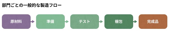 プロセス原価計算は、製造業者が1種類の製品を製造している場合に用いられます。会計担当者は、これらのコストの流れを部門ごとに算出します。たとえば、ある製造業者が酢酸を製造しているとします。個別原価計算書を使用する代わりに、製品が通過する部門ごとに価格を計算します。以下は、部門ごとの一般的な製造フローです。